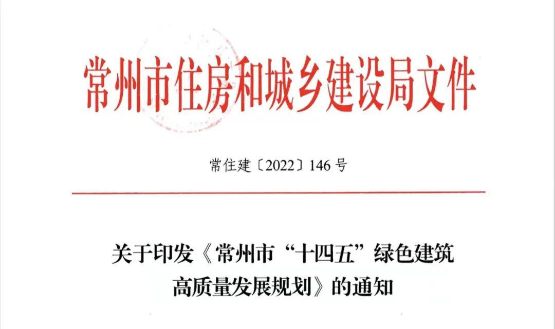 近日,为全面推进常州市绿色建筑高质量发展,推动城乡建设绿色低碳转型,根据《省委办公厅 省政府办公厅印发关于推动城乡建设绿色发展实施意见》、《省住房城乡建设厅关于推进碳达峰目标下绿色城乡建设的指导意见》及《江苏省“十四五”绿色建筑高质量发展规划》等文件精神,常州市住房和城乡建设局发布了《常州市“十四五”绿色建筑高质量发展规划》。
